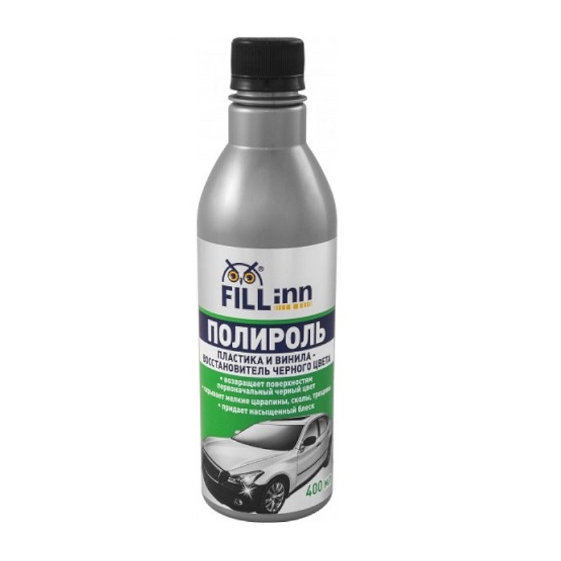 Полироль пластика и винила - восстановитель черного цвета FILL INN FL050 предназначен для ухода за внешними деталями автомобиля. Эффективен как на гладких, так и на фактурных поверхностях, подходит для бамперов, молдингов, различных декоративных элементов и пластиковых деталей зеркал. Средство обновляет внешний вид пластиковых, виниловых и резиновых покрытий, а также защищает их от вредного воздействия солнечных лучей и атмосферных осадков. Полироль восстанавливает первоначальный цвет покрытия и делает его более насыщенным, скрывает мелкие царапины и изъяны, придает благородный блеск. Объем - 400 мл.