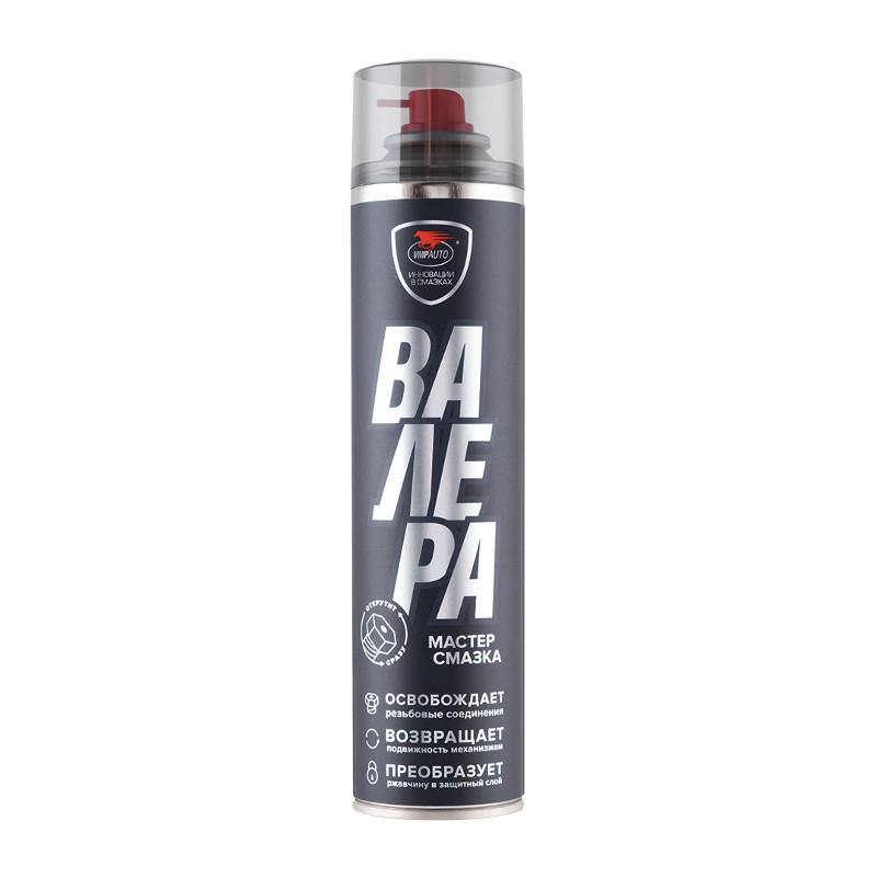 Мастер-Смазка «Валера» смазывает механизмы до 5 раз эффективнее проникающих смазок, сохраняет подвижность до -50°С. Одновременно останавливает образование коррозии и создает стойкое защитное покрытие. Нейтральна к резине и пластику в отличие от средств «жидкий ключ». Имеет синтетическую основу.