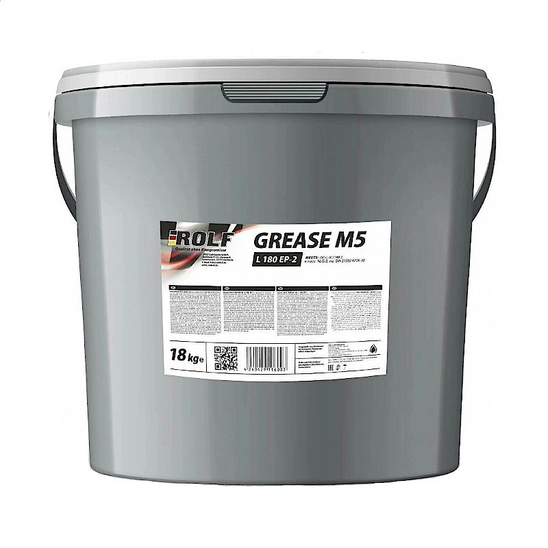 Пластичная смазка ROLF GREASE M5 L 180 EP-2 HD предназначена для смазки подшипников качения и скольжения, соединений втулка/палец, шарниров, крестовин валов, зубчатых передач, а также прочих узлов машин и промышленного оборудования.