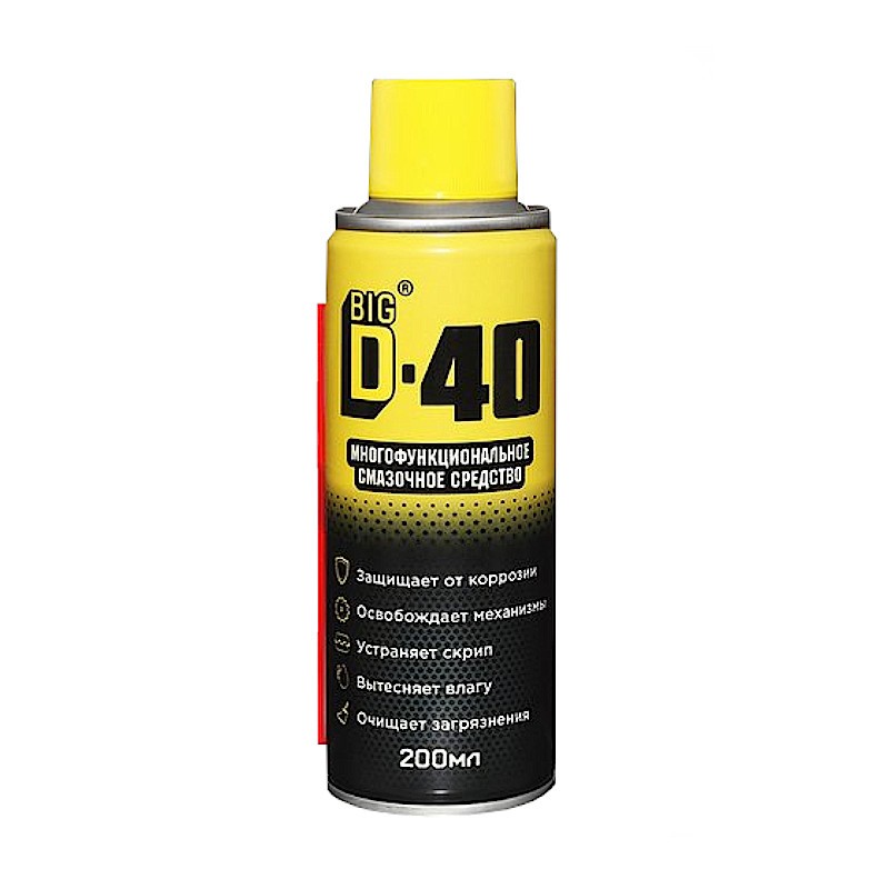 Смазывающие свойства многофункционального средства BIG D-40 / БИГ ДИ-40 позволяют эффективно устранять скрип и заедание механизмов, восстанавливает их работоспособность.