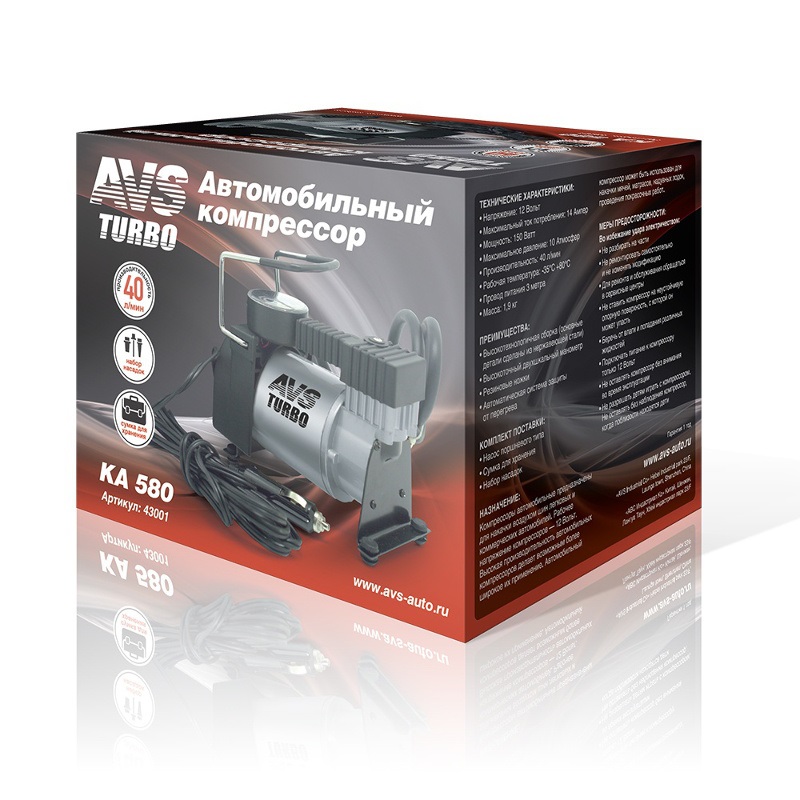 Автомобильный компрессор AVS "KA580" предназначен для накачки воздухом шин легковых и коммерческих автомобилей.