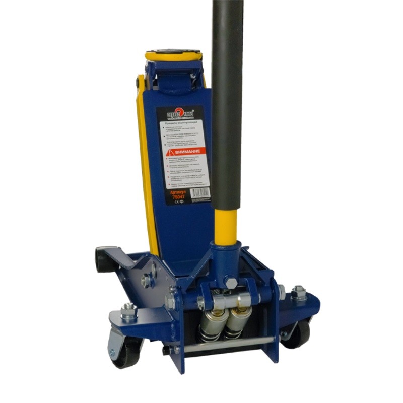 Домкрат имеет гидравлический привод, что позволяет быстро и легко поднимать автомобиль.