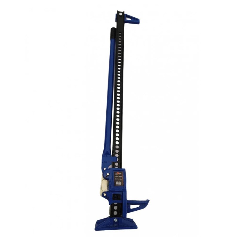 Домкрат состоит из прочной рейки, пятки (пятка подвижная, крепится к рейке с небольшим люфтом), верхней скобы, подъемной площадки механизма с "клювом" – все элементы литье. Он имеет высокую грузоподъемность - до 3 тонн, и большой диапазон высоты подъема - от 155 до 700 мм. Нижний захват домкрата отогнут под углом 90 градусов, что позволяет легко поднимать груз с низкого уровня.