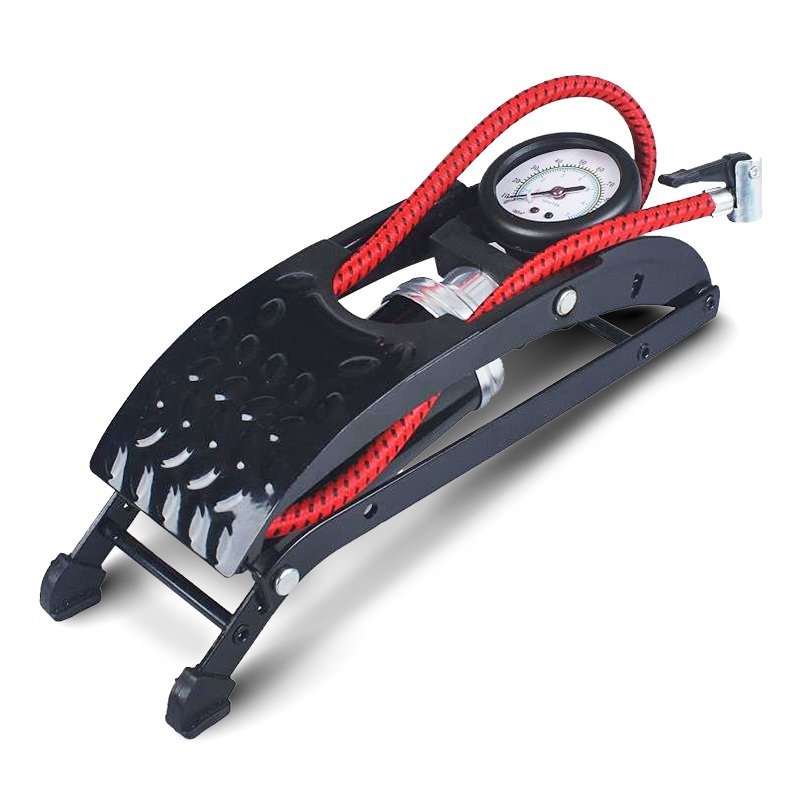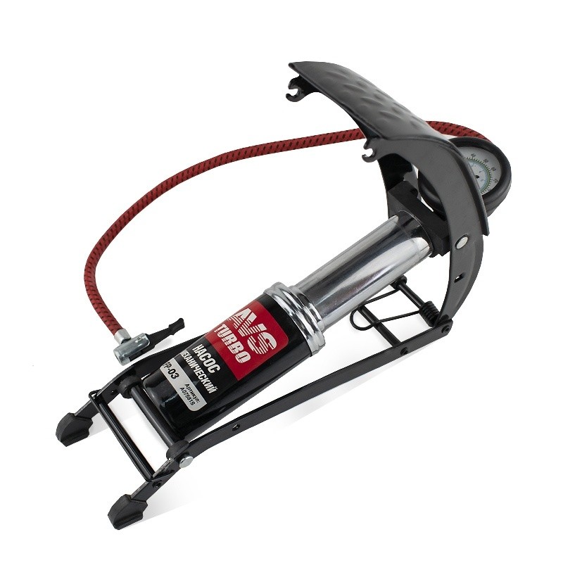Насос с усиленной конструкцией состоит из опорной рамы, педали, поршня со штоком, цилиндра, механизма высокого давления, возвратной пружины, манометра со шлангом и невозвратным клапаном.