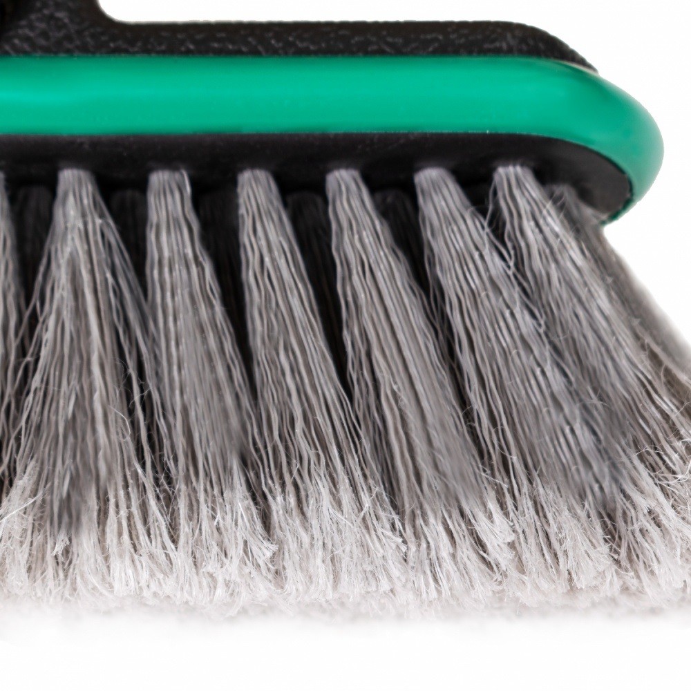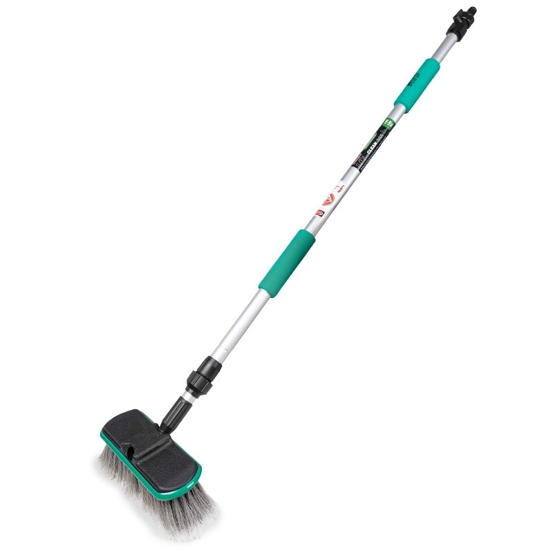 Телескопическая щетка 100-168 см с компактным размером головы, с прорезиненными краями и с супер-распушенной щетиной для безопасной мойки кузова авто.