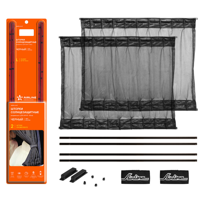 Шторки AIRLINE имеют универсальное крепление и различаются по размерам, что позволяет подобрать необходимый вариант под ваш автомобиль.