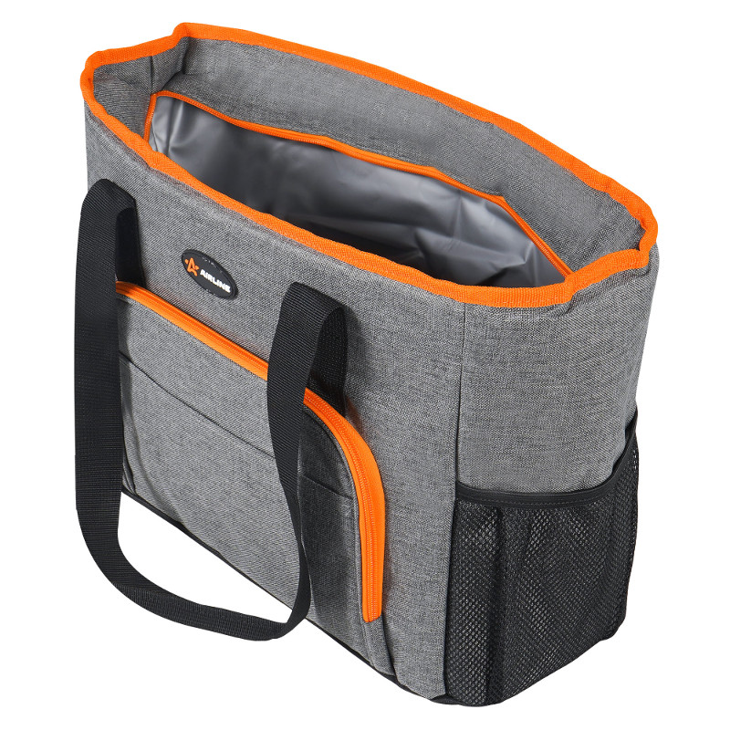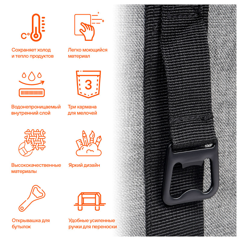 Для удобства открывания, замок молнии оснащен пуллером (подвеской). Сумка имеет пляжный фасон, что позволяет использовать ее не только для хранения продуктов, но и для перевозки обычных вещей.