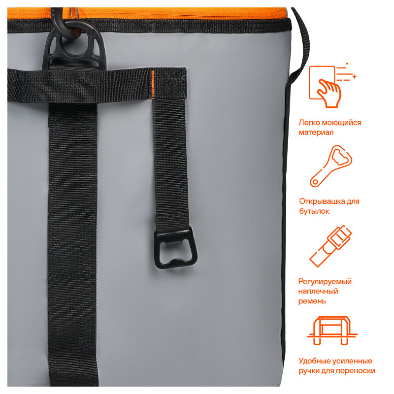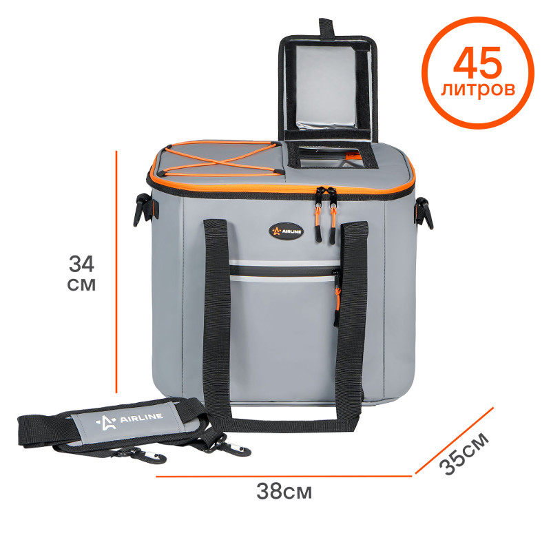 Сумка имеет дорожно-спортивный фасон кубической формы, что позволяет использовать ее не только для хранения продуктов, но и для перевозки oбъемных вещей.