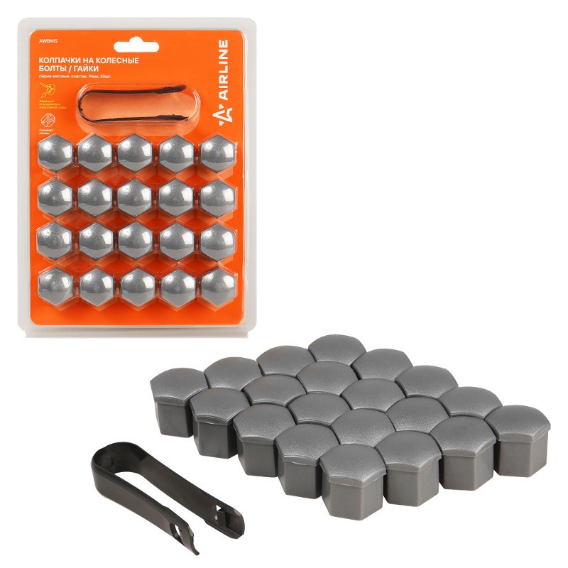 Колпачки на колесные болты или гайки, которые упакованы в наборы по 20 шт. со специальным съемником для облегчения демонтажа.