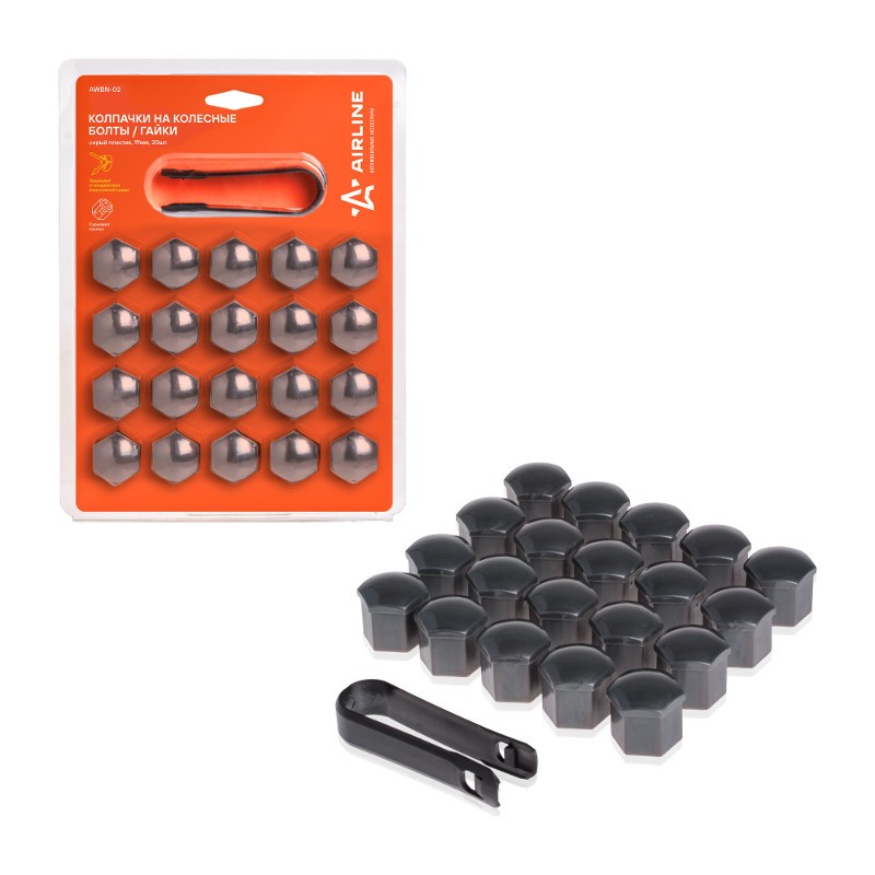 Колпачки на колесные болты или гайки, которые упакованы в наборы по 20 шт. со специальным съемником для облегчения демонтажа.