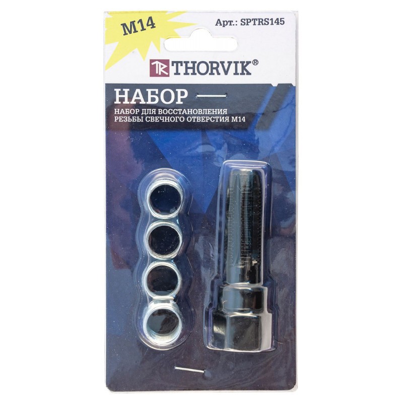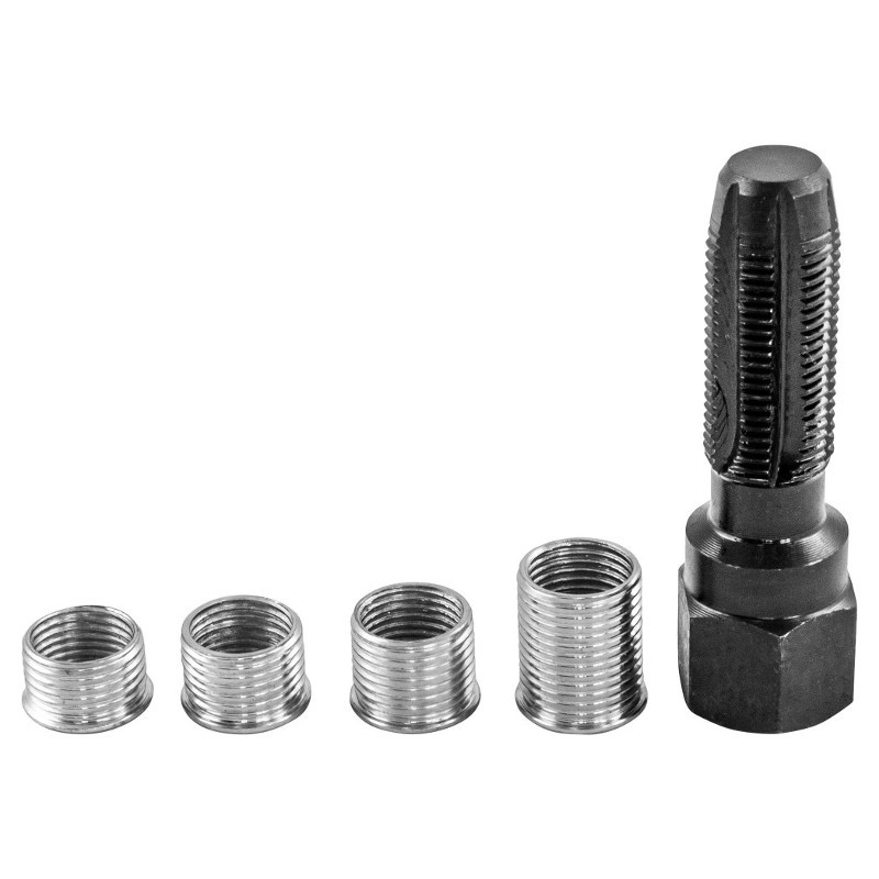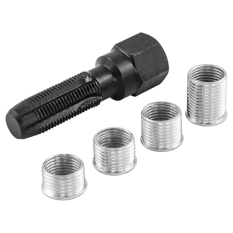Набор применяется для ремонта разрушенной резьбы свечных отверстий алюминиевых головок блоков цилиндров бензиновых ДВС различных транспортных средств и оборудования.