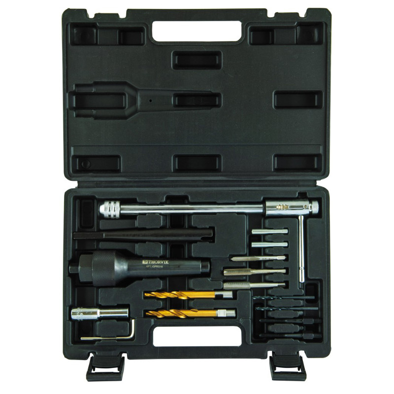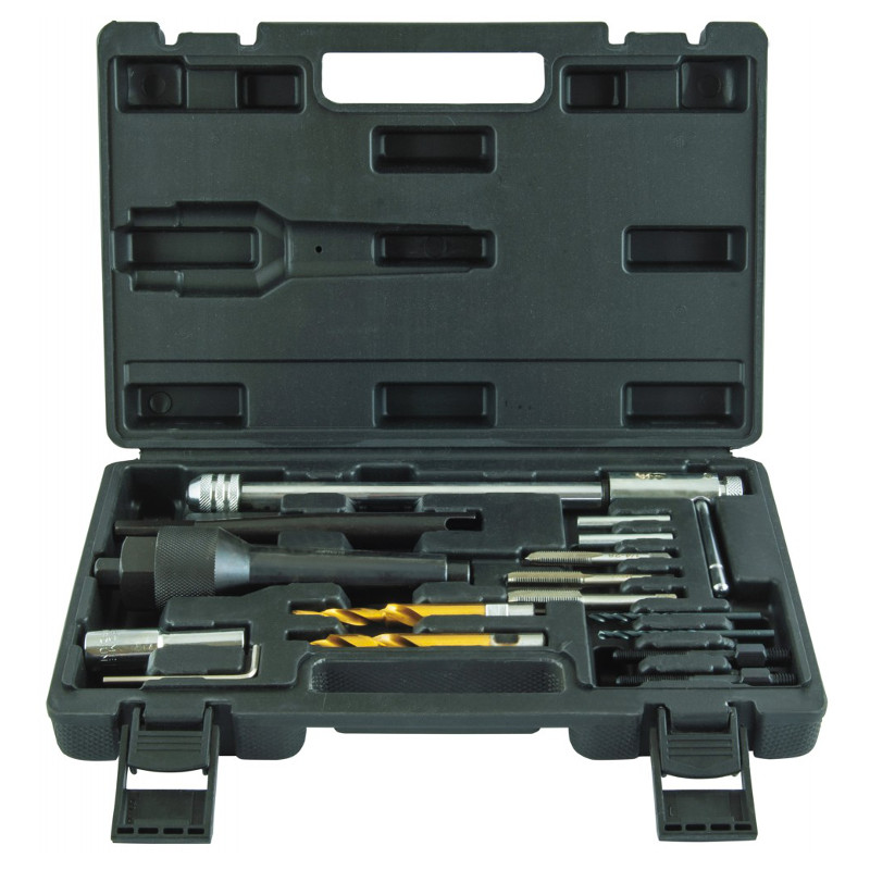 Набор приспособлений для извлечения сломанных свечей зажигания применятся для удаления поврежденных свечей накаливания механическим путём, без съёма головки цилиндра.