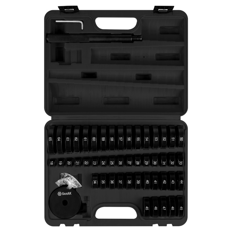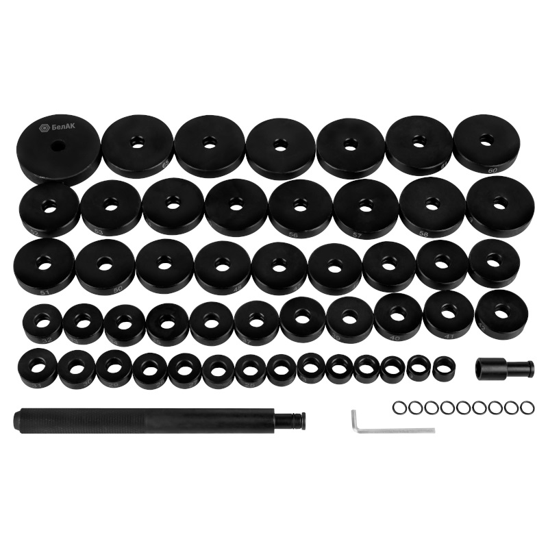 Благодаря широкому выбору оправок различных диаметров комплект позволяет аккуратно выпрессовывать и запрессовывать подшипники, втулки и сальники без перекоса и риска повреждения посадочных мест.