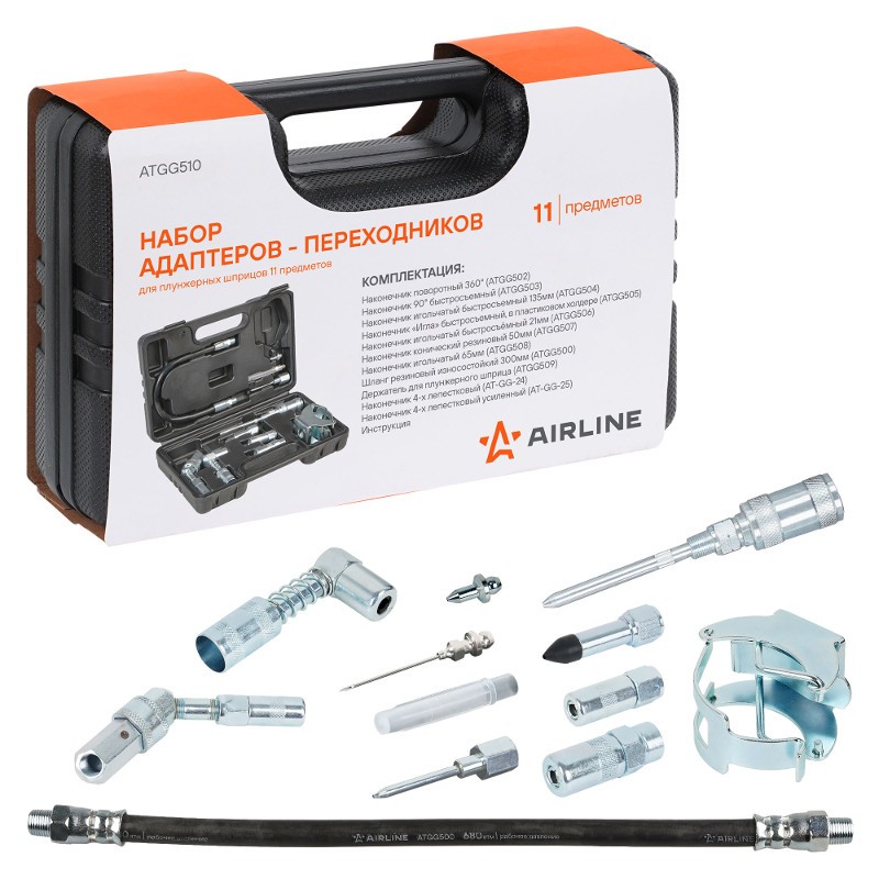 Включает в себя различные виды быстросъемных и навинчивающихся адаптеров-переходников для осуществления смазочных работ в самых труднодоступных местах.