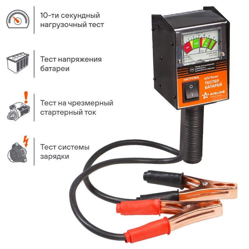 Портативный тестер батарей от AIRLINE позволит оперативно оценить рабочее состояние автомобильной системы зарядки.