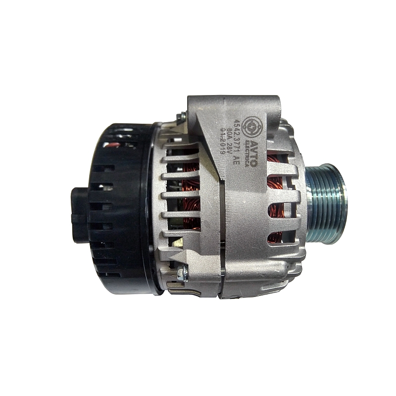 Генератор 4542.3771 предназначен для работы в качестве источника электри-ческой энергии параллельно с аккумуляторной батареей в системе электрооборудования автомобилей КАМАЗ с двигателями КАМАЗ ЕВРО-3, -4. Генератор выпускается со встроенным выпрямительным блоком и многофункциональным регулятором напряжения, для подключение которого к системе электрооборудования автомобиля использован герметичный 5-типиновый разъем.