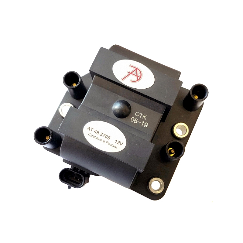 Модуль зажигания АТ48.3705 предназначен для работы в составе микропроцессорных систем управления двигателями внутреннего сгорания, получения высокого напряжения в системах зажигания двигателей УМЗ, МЕМЗ с впрыском топлива. Модуль устанавливается на автомобили производства ОАО "ГАЗ" (ГАЗЕЛЬ-БИЗНЕС), оборудованные микропроцессорными системами управления двигателями, а также поставляется в запасные части к ним