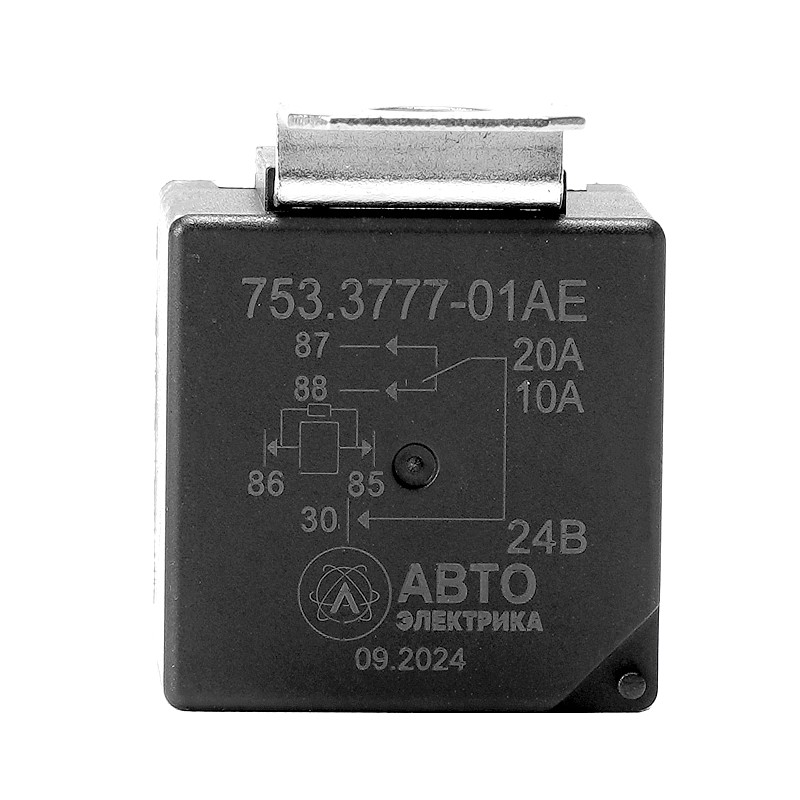 РЕЛЕ 753.3777-01 АЕ С ПЕРЕКЛЮЧАЮЩИМИ КОНТАКТАМИ И КАРМАНОМ / СКОБОЙ КРЕПЛЕНИЯ 5-ти КОНТАКТНОЕ предназначено для коммутации ЭЛЕКТРИЧЕСКИХ ЦЕПЕЙ