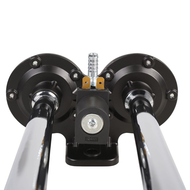 Пневматический звуковой сигнал с электроклапаном, рассчитан на подключение к имеющейся пневмосистеме автомобиля с рабочим давлением 6 атм.