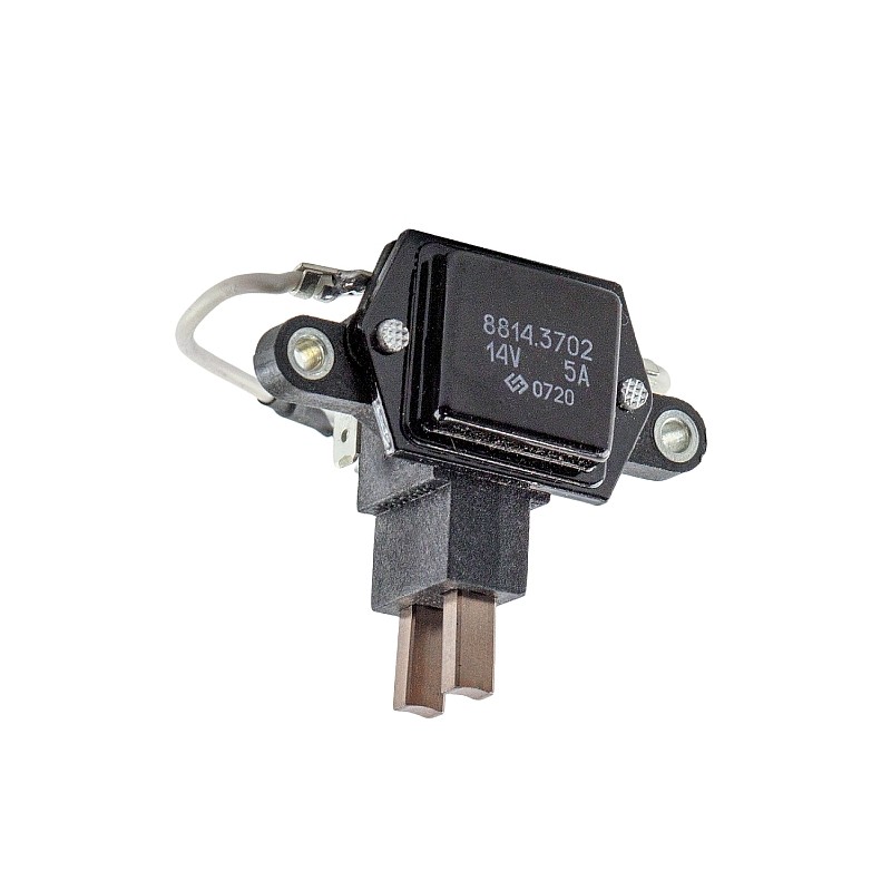 Регулятор напряжения со щёточным узлом 8814.3702 предназначен для поддержания напряжения бортовой сети автомобиля в заданных пределах во всех режимах работы системы электрооборудования при изменении частоты вращения ротора генератора, электрической нагрузки, температуры окружающей среды.