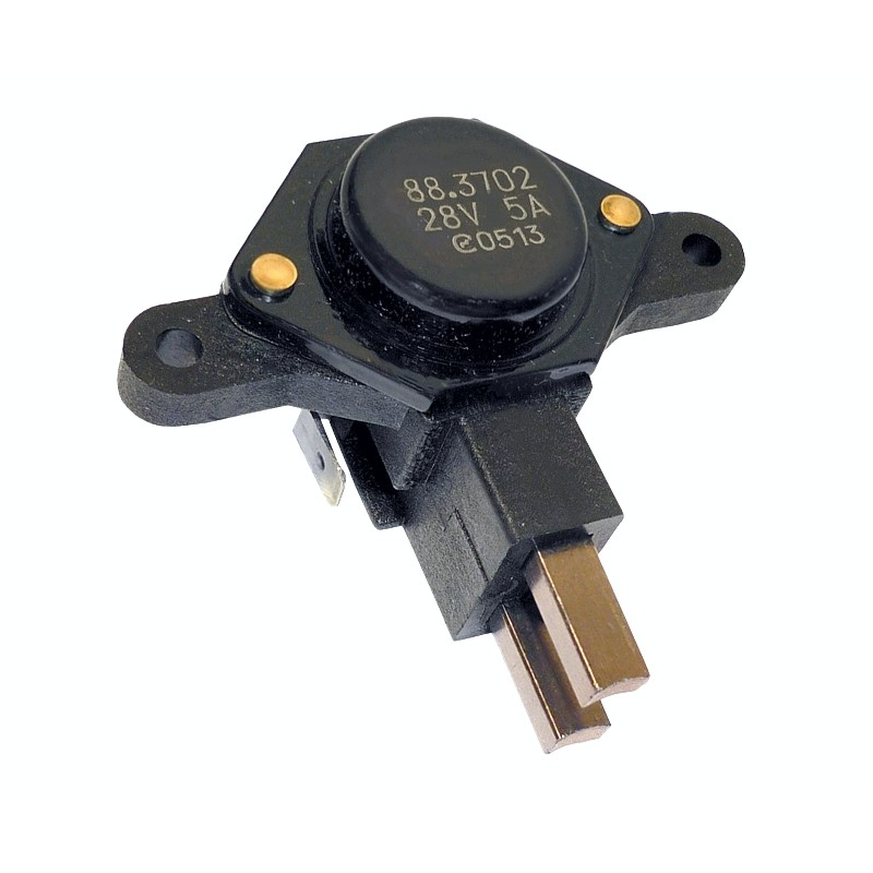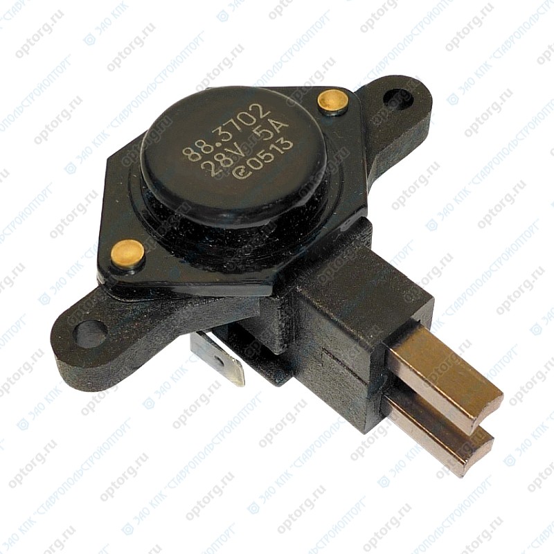 Регулятор напряжения 88.3702 со щеточным узлом предназначен для поддержания напряжения бортовой сети автомобиля в заданных пределах во всех режимах работы системы электрооборудования при изменении частоты вращения ротора генератора, электрической нагрузки, температуры окружающей среды.