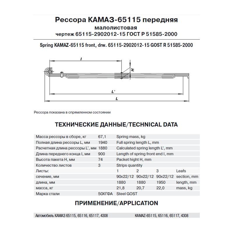 Полная длина рессоры L, мм 1960