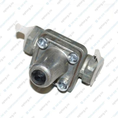 предохранения тормозной системы автомобиля от потери сжатого воздуха в ней при питании сжатым воздухом тормозной системы прицепа.При снижении общего давления из-за нарушения герметичности потребителей до заданного уровня,например при обрыве магистрали прицепа, он отсоединяет тормозную систему автомобиля от потребителей.Кроме того, клапан предотвращает прохождение сжатого воздуха от потребителей,например,из питающей магистрали прицепа в тормозную систему тягача.