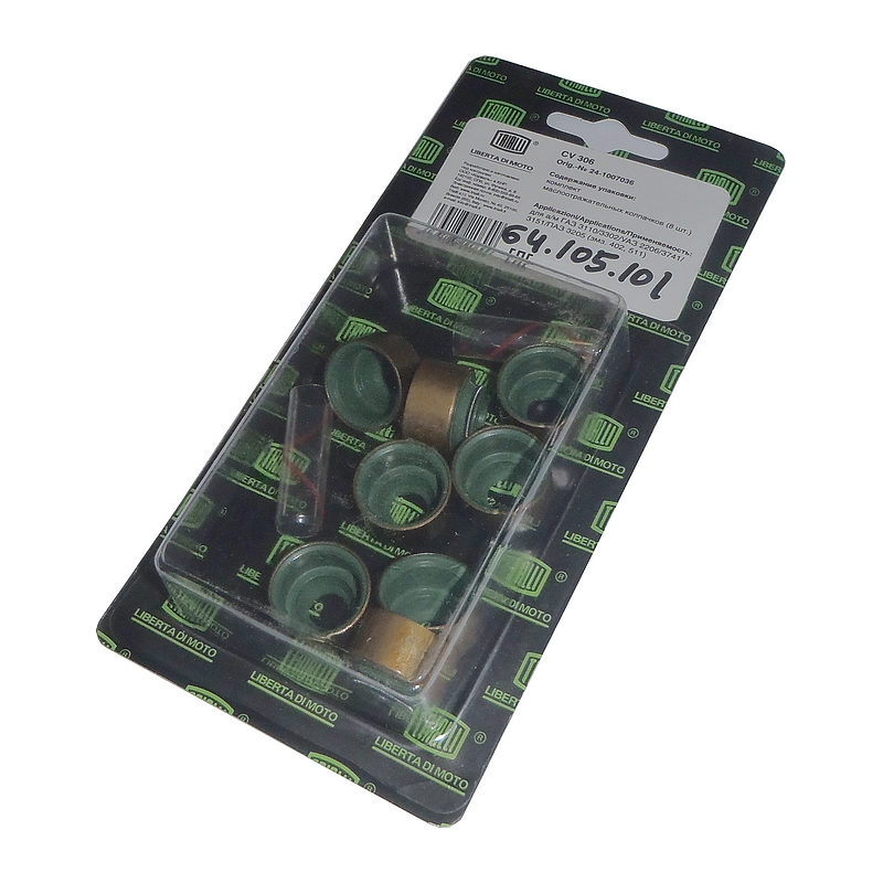 Комплект маслосъемных колпачков ГАЗ-2410, 3102, 3307, 5312, 66; УАЗ 2206, 3151, 3303, 3741, 3962