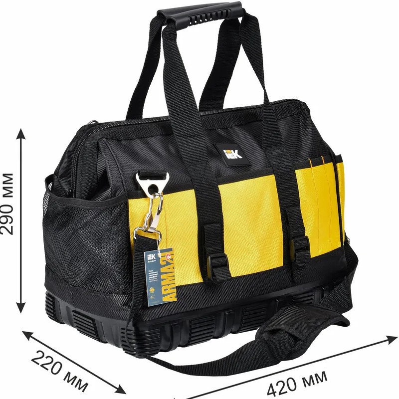 Сумка монтажника с резиновым дном BG-01 предназначена для удобной и безопасной транспортировки инструментов при выездных работах. Сумка выполнена из ткани полиэстер 1680D Оксфорд с PVC-пропиткой, обладающей высокой износостойкостью и влагозащитой. Прорезиненное дно с высокими бортиками защищает сумку от промокания и загрязнения. Резиновые ручки и наплечник с анатомической вставкой на ремне позволят комфортно переносить сумку.