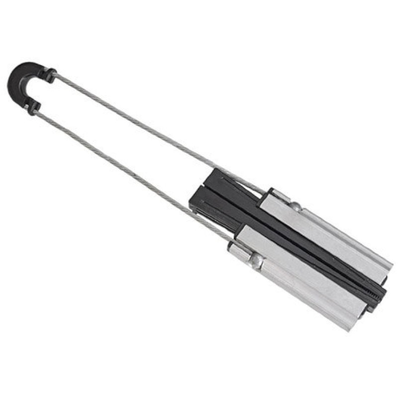 Зажим анкерный натяжной клиновой PA-1500К предназначен для анкерного крепления несущего проводника или кабеля. При монтаже проводник или кабель закладывается в зажим между клиньями и зажимается.