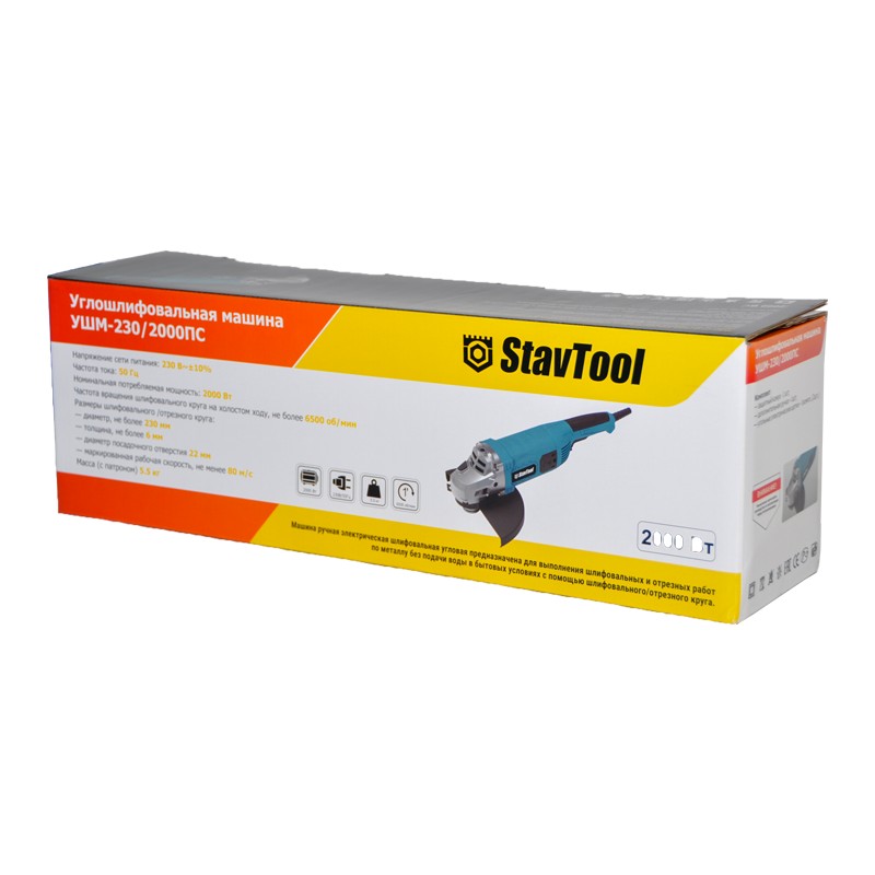 Углошлифовальная машина УШМ-230/2000ПС с поворотной рукояткой.