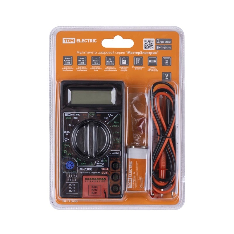 Материалы: корпуса мультиметра изготовлен из не поддерживающего горение пластика.