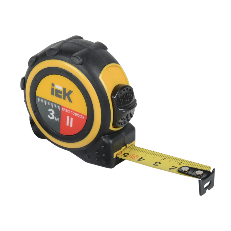 Рулетка IEK защищена ударопрочным эргономичным корпусом с фиксатором.