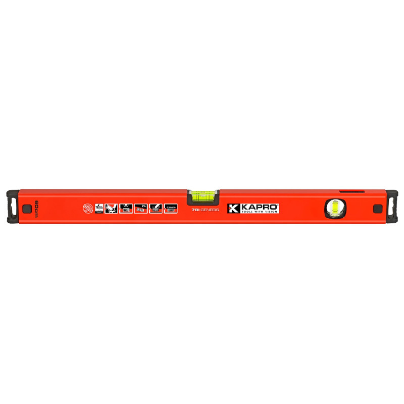 Магнитный уровень PLUMBSITE GENESIS 40 см KAPRO 781-40-40РМ - это алюминиевый уровень коробчатого сечения длиной 40 см, который позволяет обнаружить отклонение поверхности от горизонтали или вертикали. Отличительной особенностью его является наличие мощных магнитов. Уровень имеет 2 глазка. Главное преимущество прибора - в ударопрочной полиакриловой колбе, к тому же, он изготовлен по системе PLUMBSITE, что даёт возможность работать с колбой как с боковой стороны, так и с фронтальной.