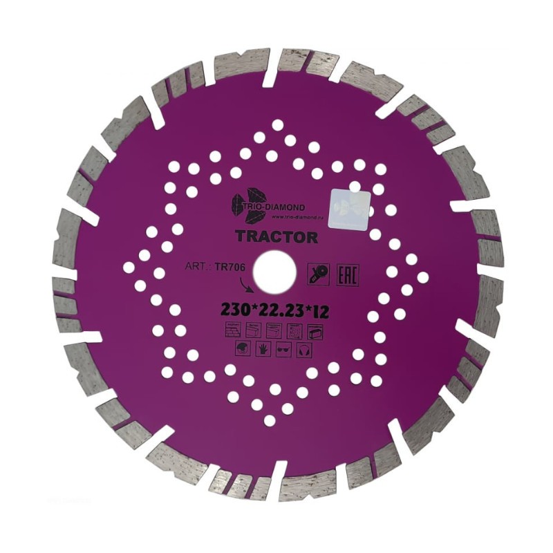 Диск алмазный Tractor TRIO-DIAMOND TR706 используется на угловых шлифовальных машинах и ручных резчиках.