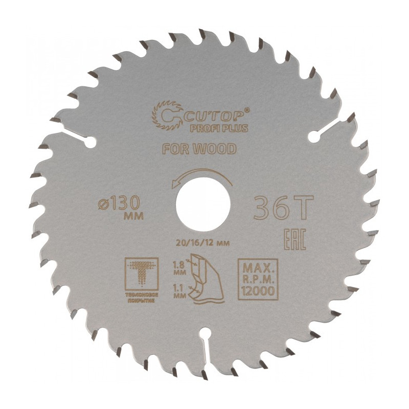 Диск пильный с тефлоновым покрытием по дереву Profi plus 230x1.6/2.4x32/30/25.4/20 мм, 36Т CUTOP 75-23036Т используется совместно с циркулярными и торцовочными пилами для продольного и поперечного реза. Предназначен для распила мягких и твердых пород древесины, МДФ, фанеры.