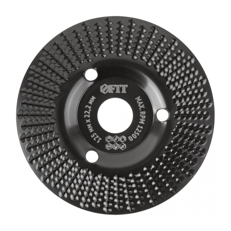 Наклонный. Насечка рашпильного типа. Для углошлифовальных машин с регулировкой оборотов. Для придания формы, фигурной обработки, снятия фасок и предварительного выравнивания древесины, фанеры, ДСП, ДВП, ламината, гипсокартона и пластика, удаления коры и мелких сучков с древесины. Материал: инструментальная сталь. Тип упаковки: блистер.