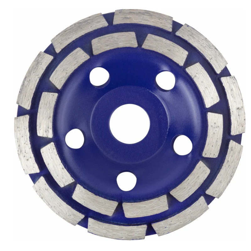 Диск алмазный шлифовальный, двойной сегмент 125x22.2 мм CUTOP 63-12560 используется для работы по камню, кирпичу, бетону и мрамору. Изготовлен из инструментальной стали, режущая кромка содержит порошок из технических алмазов. Толщина диска 5 мм. Высота алмазного слоя 8 мм.