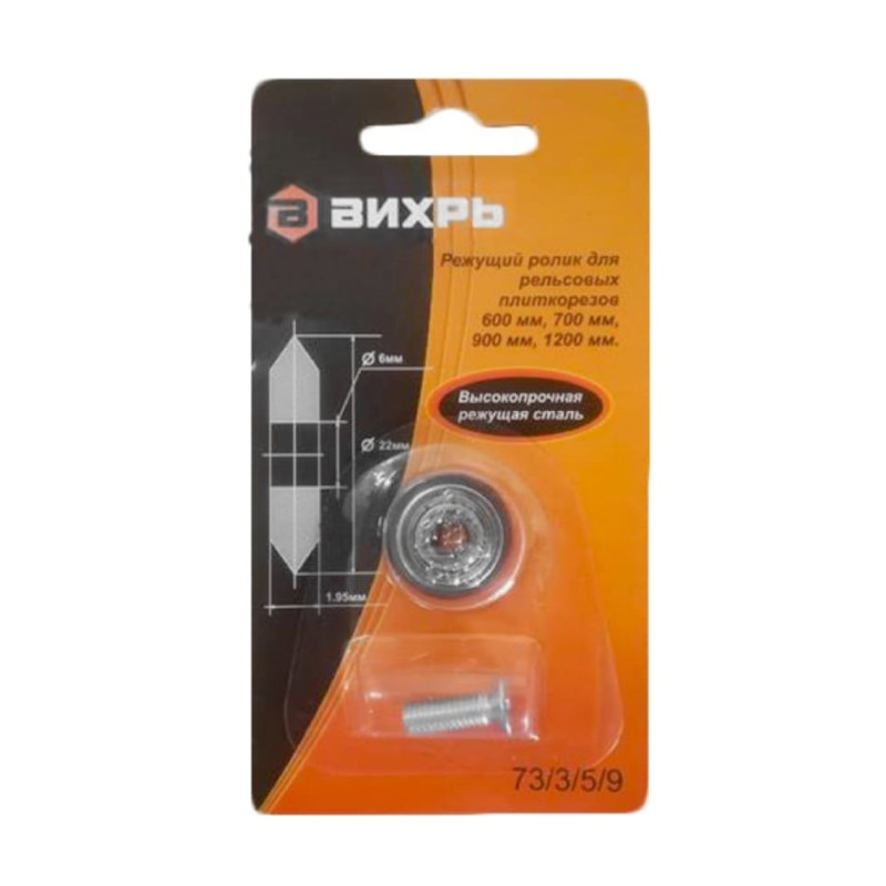 Ролик является сменным элементом плиткорезов Вихрь. Подходит для плиткорезов с максимальной длиной плитки 600 мм, 700 мм, 900 мм и 1200 мм. Применяется при резке керамической кафельной плитки. Твёрдость HRA(90-94) 93