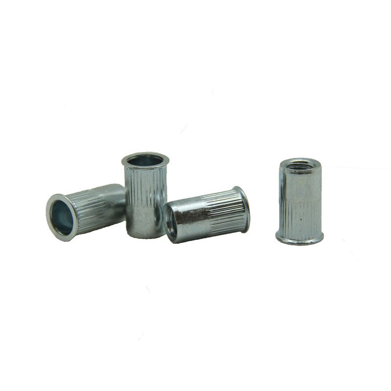 Резьбовая заклепка с цилиндрическим бортиком и насечками применяется для скрепления материалов и формирования в них резьбового соединения.