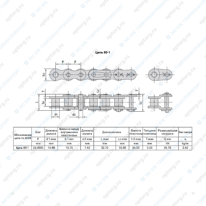 Цепь 80-1 DH приводная роликовая однорядная премиального уровня качества. Шаг цепи t=25.4 мм, L=1,778м, 70звеньев, толщина пластины t=3,25 мм, раз/нагрузка 56,7 Q min/kN. Европейский стандарт A seria - ISO 606-94. Производитель DONGHUA. Фактическая разрушающая нагрузка данного производителя Q0=69,4 kN. Средний ресурс безотказной работы в несколько раз превышает стандартные цепи произведенные в рамках ГОСТ.