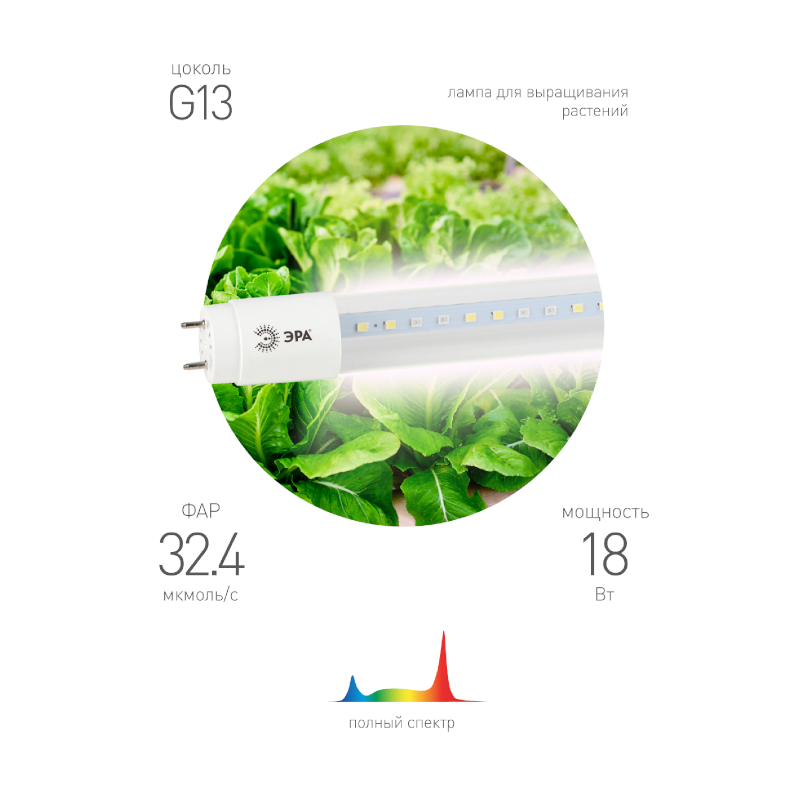 Лампы ЭРА Т8 полного спектра хорошо подходят для выращивания большинства комнатных и садовых цветов, овощей, фруктовых культур. Они излучают комфортный для глаз человека свет, поэтому могут использоваться в жилых помещениях. Вы получаете освещение ровного белого цвета (без розовых, фиолетовых или красных лучей), без пульсаций, с высоким индексом цветопередачи (не искажает естественные цвета предметов в комнате).