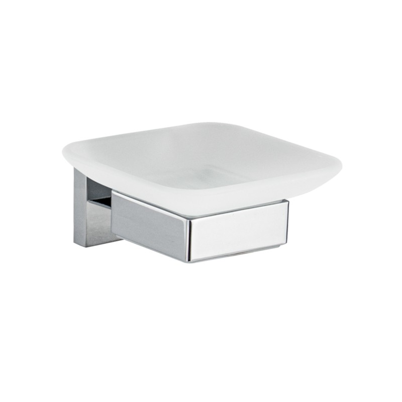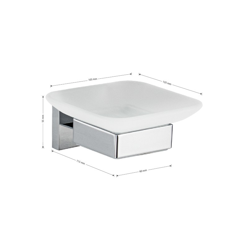 Мыльница подвесная, стеклянная с креплением к стене, квадратной формы на основании.