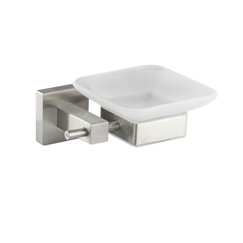 Мыльница подвесная, стеклянная с креплением к стене, квадратной формы на основании.