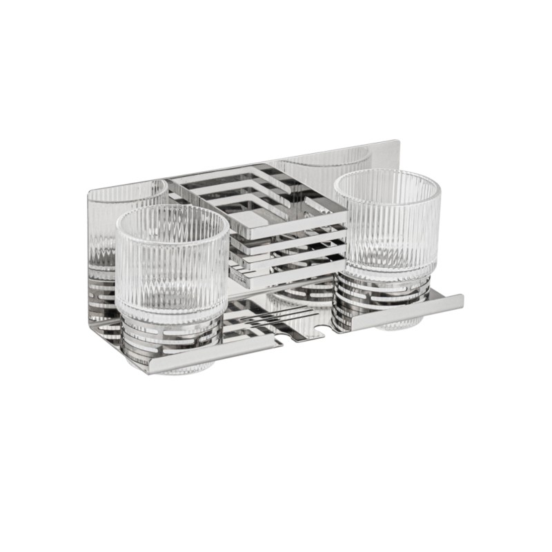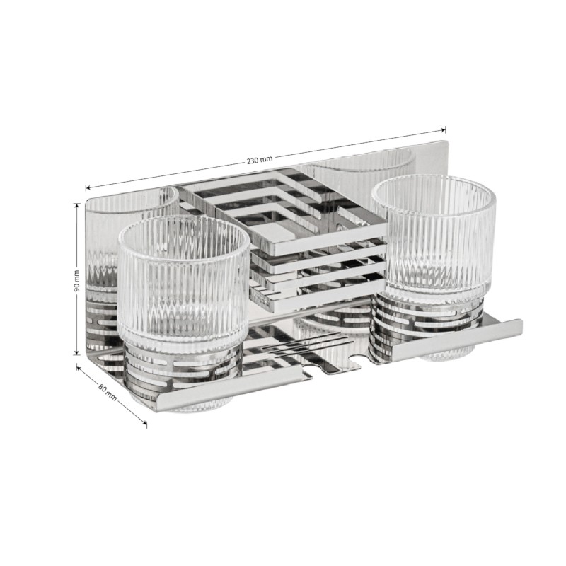 Полочка с двумя стеклянными стаканами и подставкой для зубных щёток, с креплением к стене.