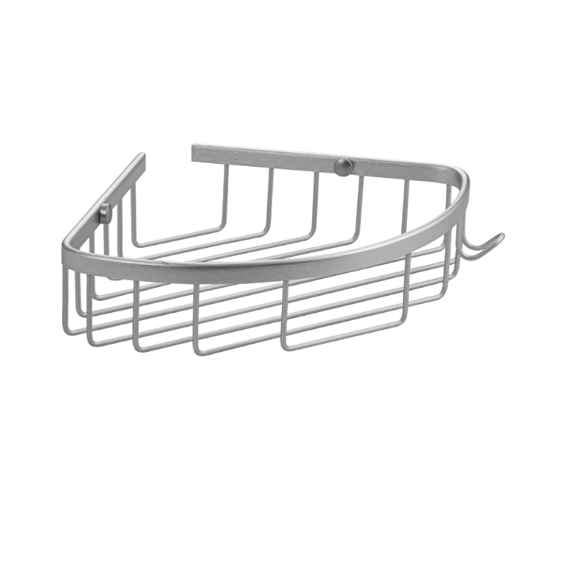 Полочка для принадлежностей угловая, решётка, однаэтажная, с крючком, обладает высокими эксплуатационными характеристиками и подходит для использования дома, в общественных местах: отелях, ресторанах и пр.