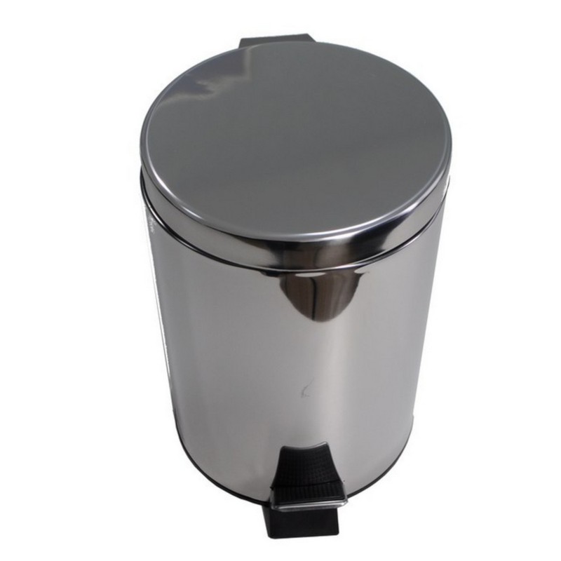 Круглое хромированное ведро для хранения мусора с педалью и откидной крышкой прекрасно подойдет для ванной комнаты, туалета или кухни и офиса.