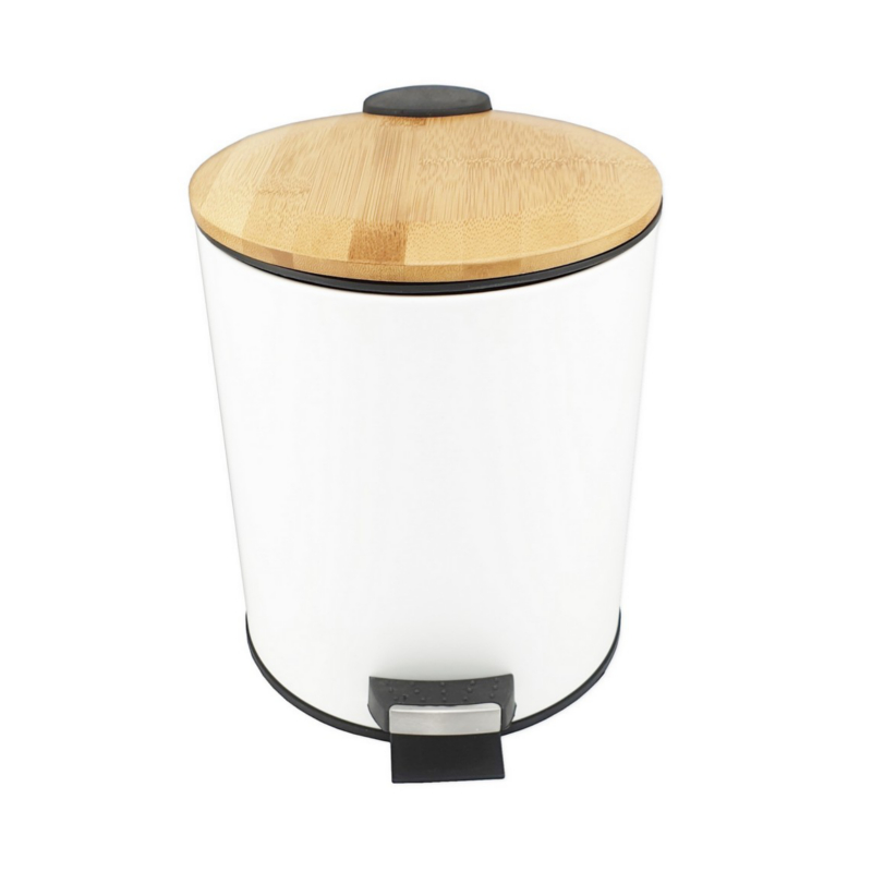 Круглое ведро белое с деревянной крышкой для хранения мусора с педалью и откидной крышкой прекрасно подойдет для ванной комнаты, туалета или кухни и офиса.