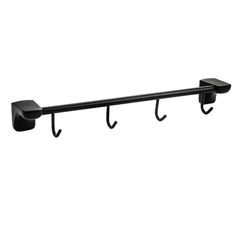 Держатель для полотенец металлический, чёрного цвета, с четырьмя крючками.