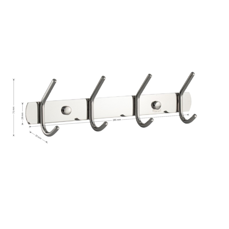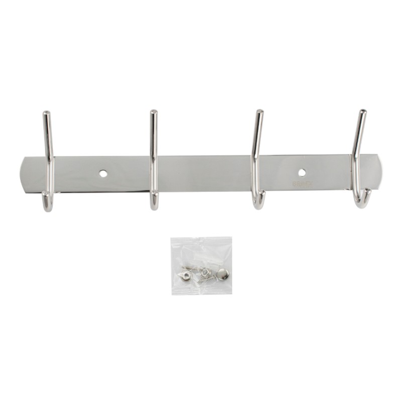 Вешалка - держатель для принадлежностей, металлический, хромированный, с четырьмя двойными крючками.